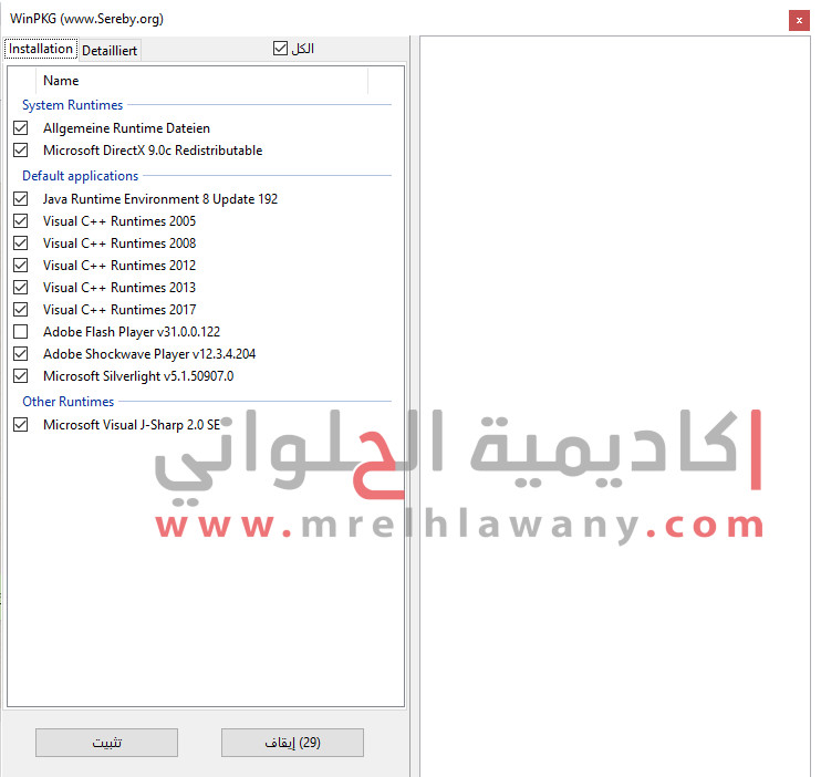 الأداة تضم كل حزم الدعم اللازمة من ++Java , Flash Player , DirectX, NetFramework ,Visual C وغيرها من الحزم الضرورية والتي لابد من وجودها على كل جهاز.