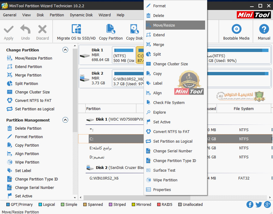 4. تحجيم البرتيشنات تصغير وتكبير ودمج البرتيشنات دون فقدان الملفات