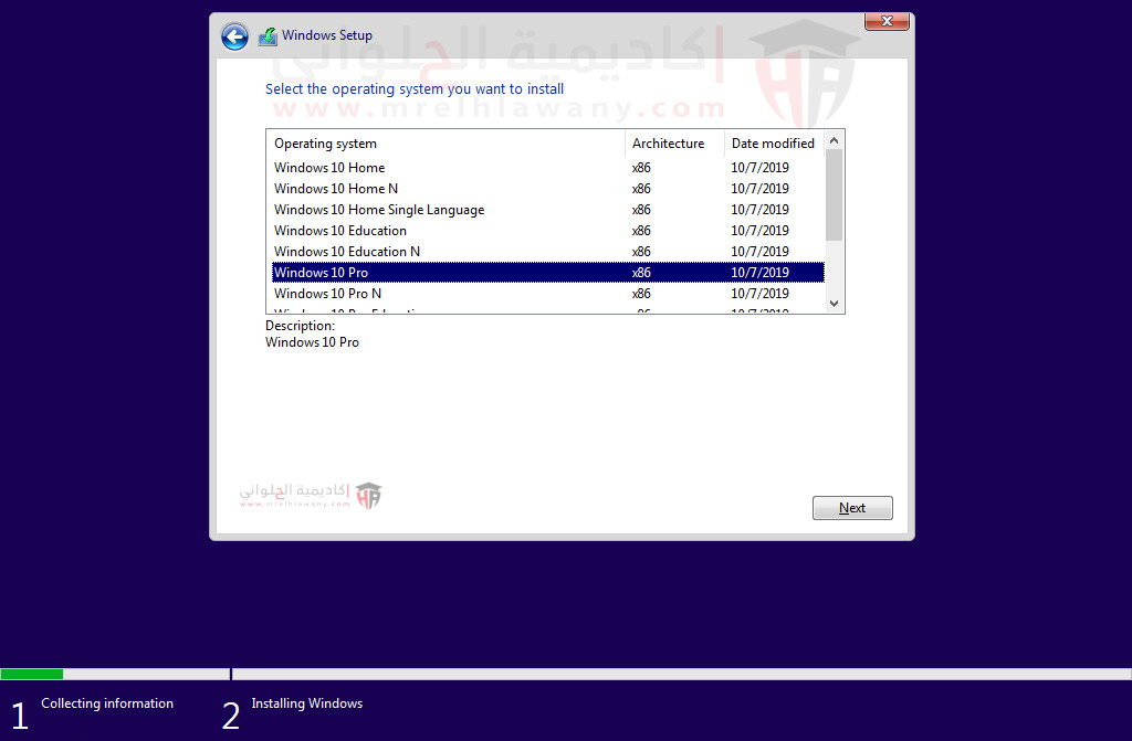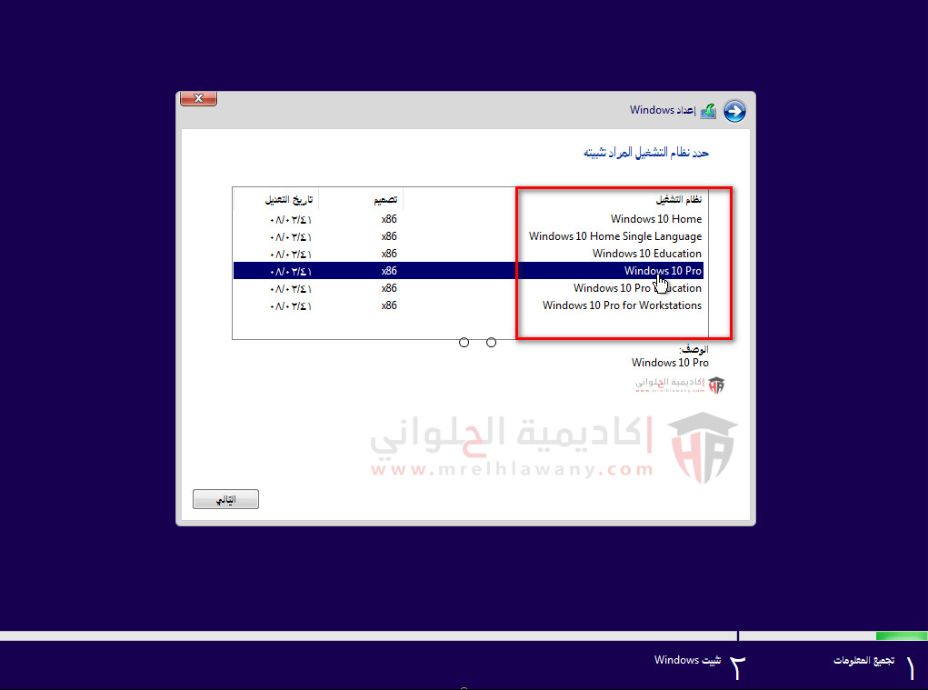 الاصدارات المتوفرة  عند التثبيت بكل اسطوانة لويندوز 10 اورجينال