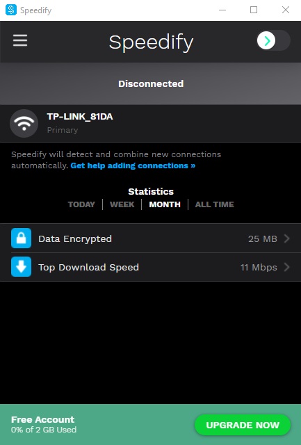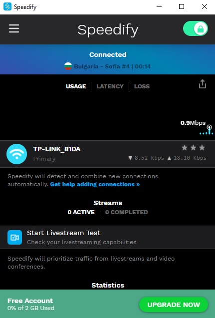 Speedify هو تطبيق شبكة افتراضية خاصة (VPN). أهم ميزة من ميزات هذا التطبيق أنه يشتغل في الخلفية عندما تكون أنت بصدد تصفح الأنترنيت. بهذه الطريقة، سوف لن تحس أبدا بأن هناك أي تغيير في الربط بالأنترنيت. قد تخلق هذه الميزة بعض الإشكالات إن تم استخدامها بإفراط، لذا لإن التطبيق يوفر لك إمكانية ضبطها في حدود يومية أو شهرية من خلال الإعدادات.