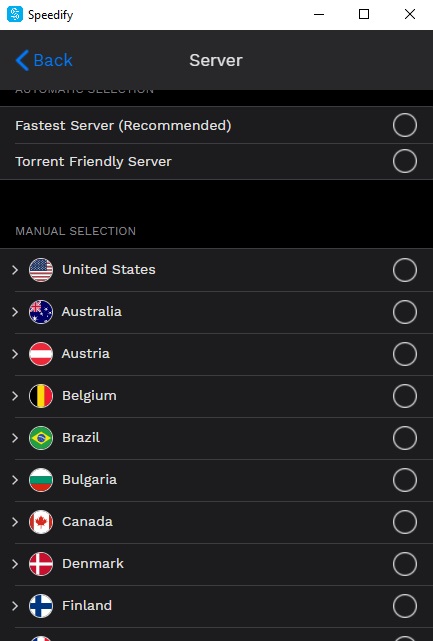 بالإضافة إلى هذه الميزة المثيرة، فإن تطبيق Speedify يمنحك كل مزايا الشبكة الافتراضية الخاصة مثل إمكانية ولوج الأنترنيت بكل أمان وخصوصية. في الواقع، فإن هذا التطبيق يمكنك من اختيار البلد الذي ترغب في الارتباط منه.